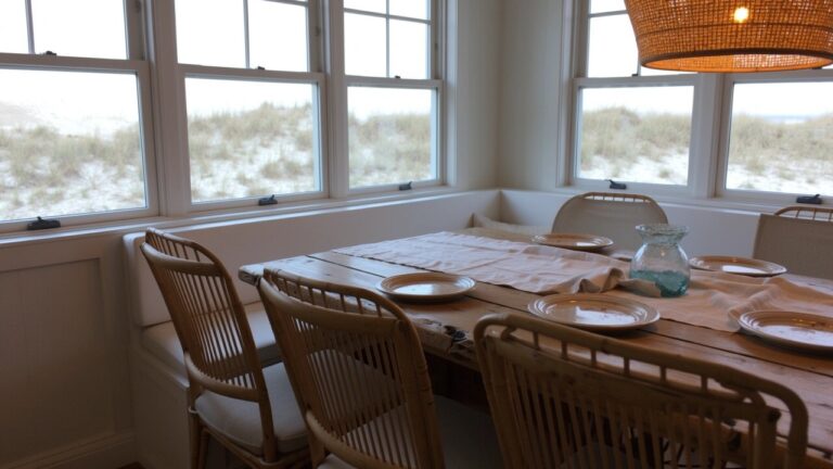 I’ve started seeing beach dining rooms that actually work for casual gatherings, the kind where friends drop by unannounced. Those setups draw me in when they layer weathered woods with breezy whites, letting sunlight do most of the heavy lifting. I skip anything with bold stripes or faux coral because it crowds the space and kills the flow. Simple rope details hold up best. A couple of these approaches have me rethinking my own table for easier summer nights.